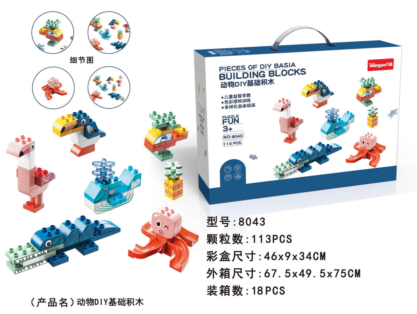 品  名:動物DIY基礎(chǔ)積木112顆粒